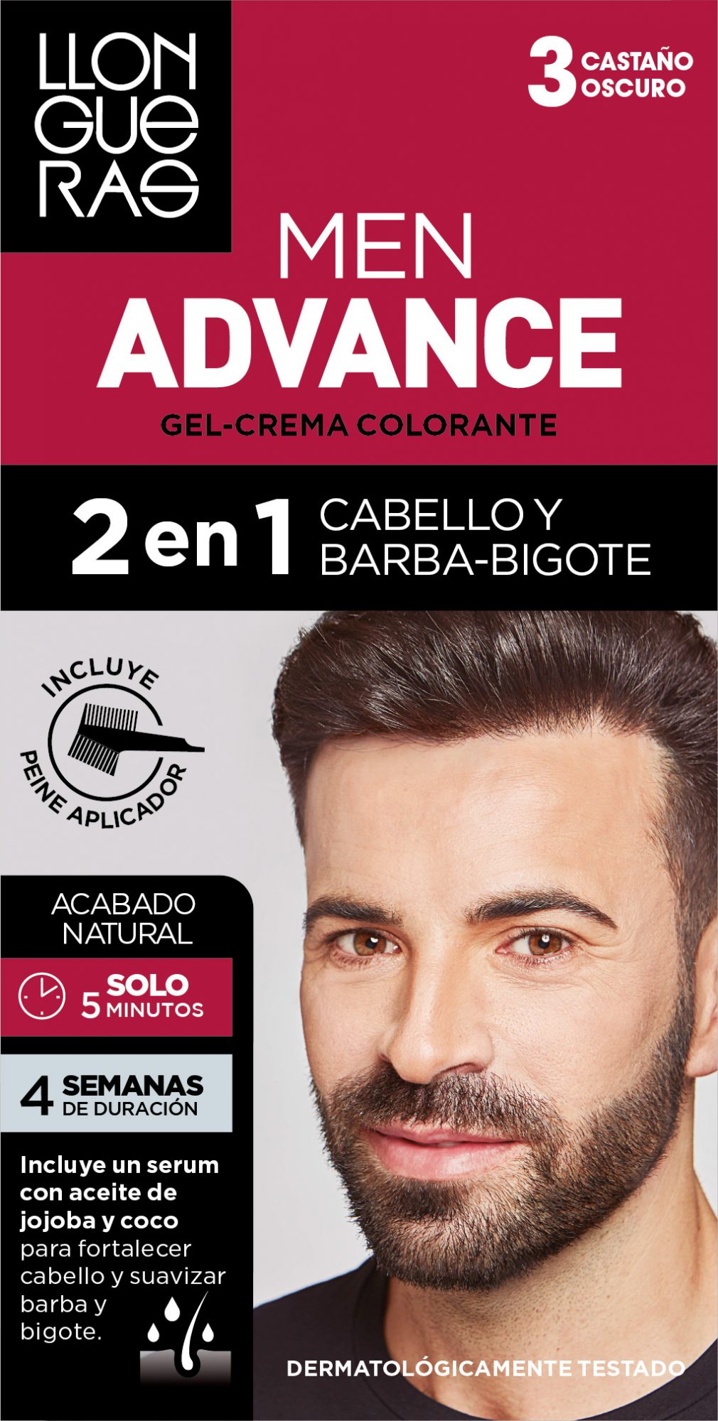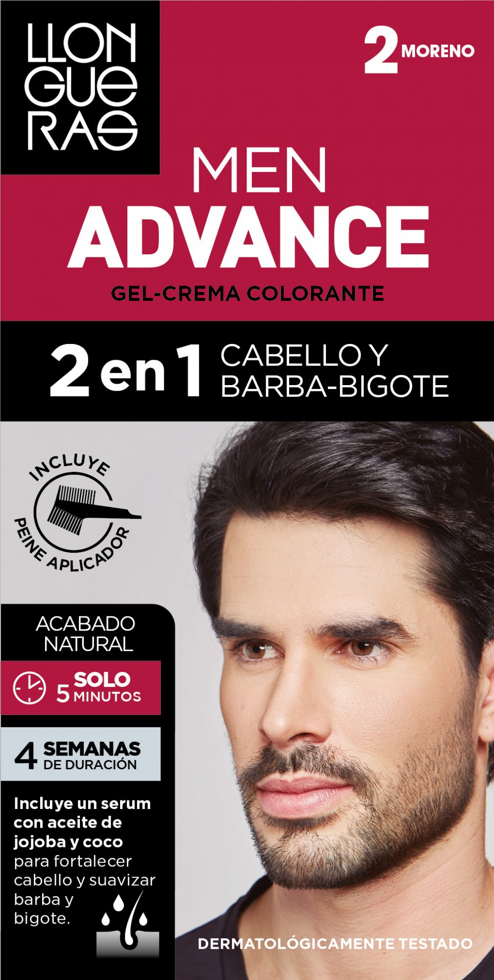 Fórmula profesional para hombre que atenua las canas de cabello y barba-bigote mientras cuida y fortaleze tu cabello recuperando tu color más natural.