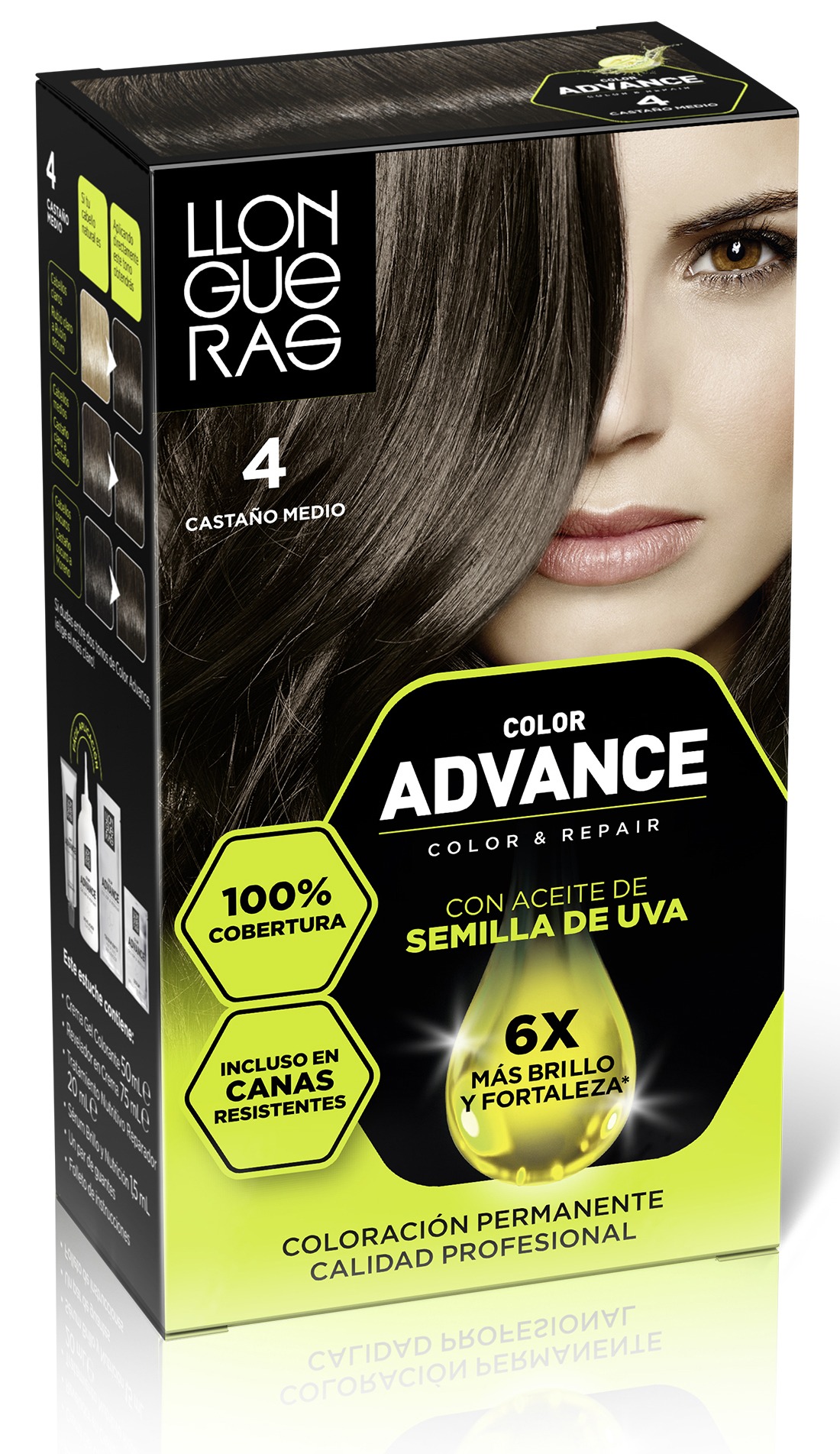 El nuevo COLOR ADVANCE COLOR&REPAIR te ofrece una coloración permanente con calidad profesional que te proporcionará un color intenso y duradero, y un extra de cuidado devolviendo la juventud y suavidad a tu cabello. Formulado con ingredientes innovadores como la Provitamina B5 y el aceite de semilla de Uva. El aceite de semilla de uva contiene Vitamina E y un alto contenido en aceites grasos esenciales como el Omega 6 y Omega 3.